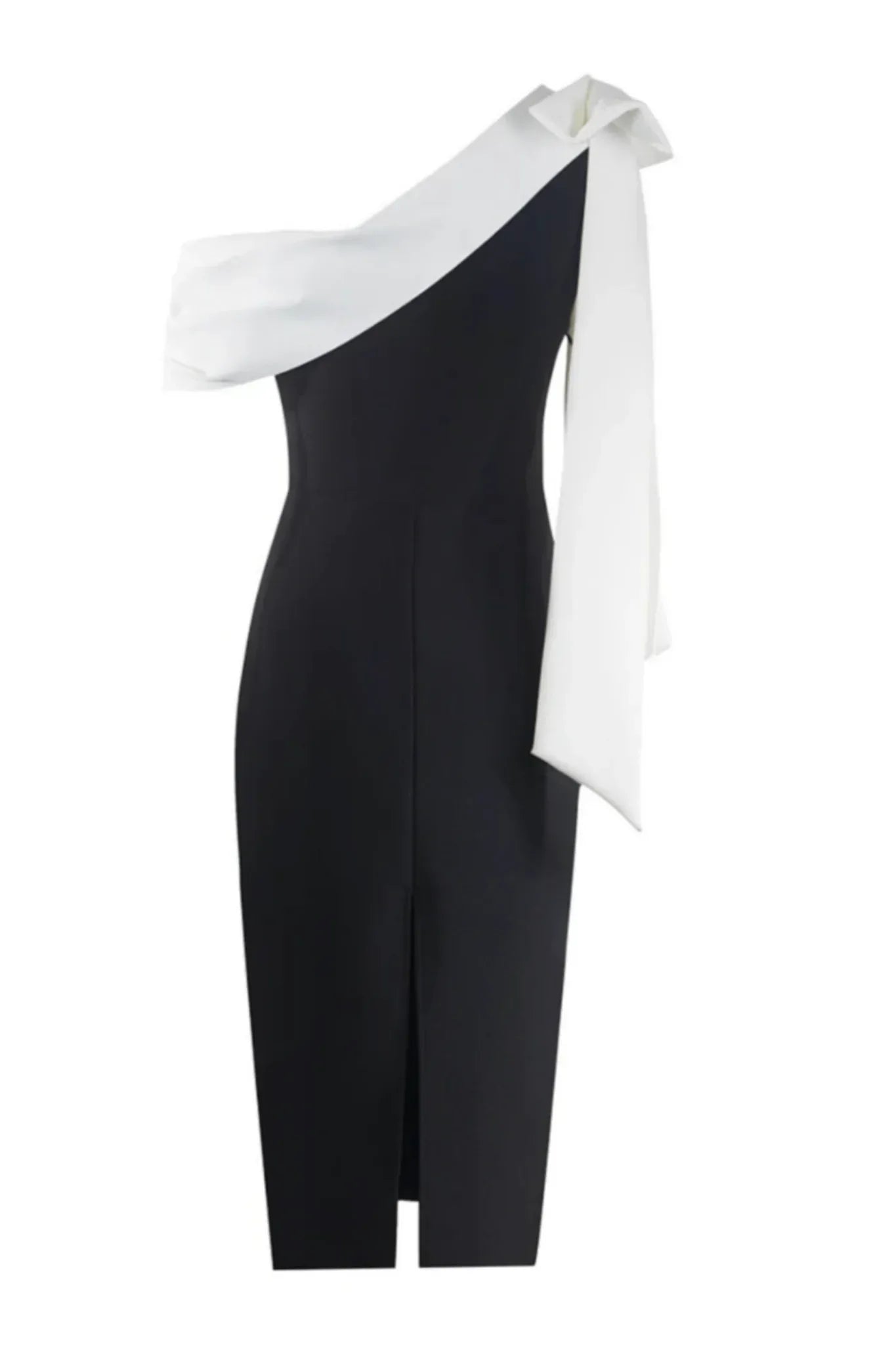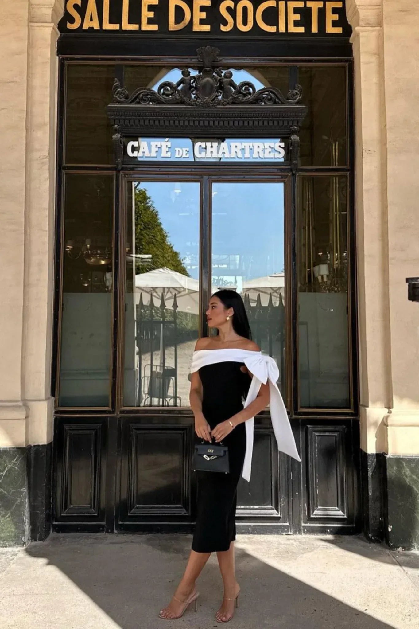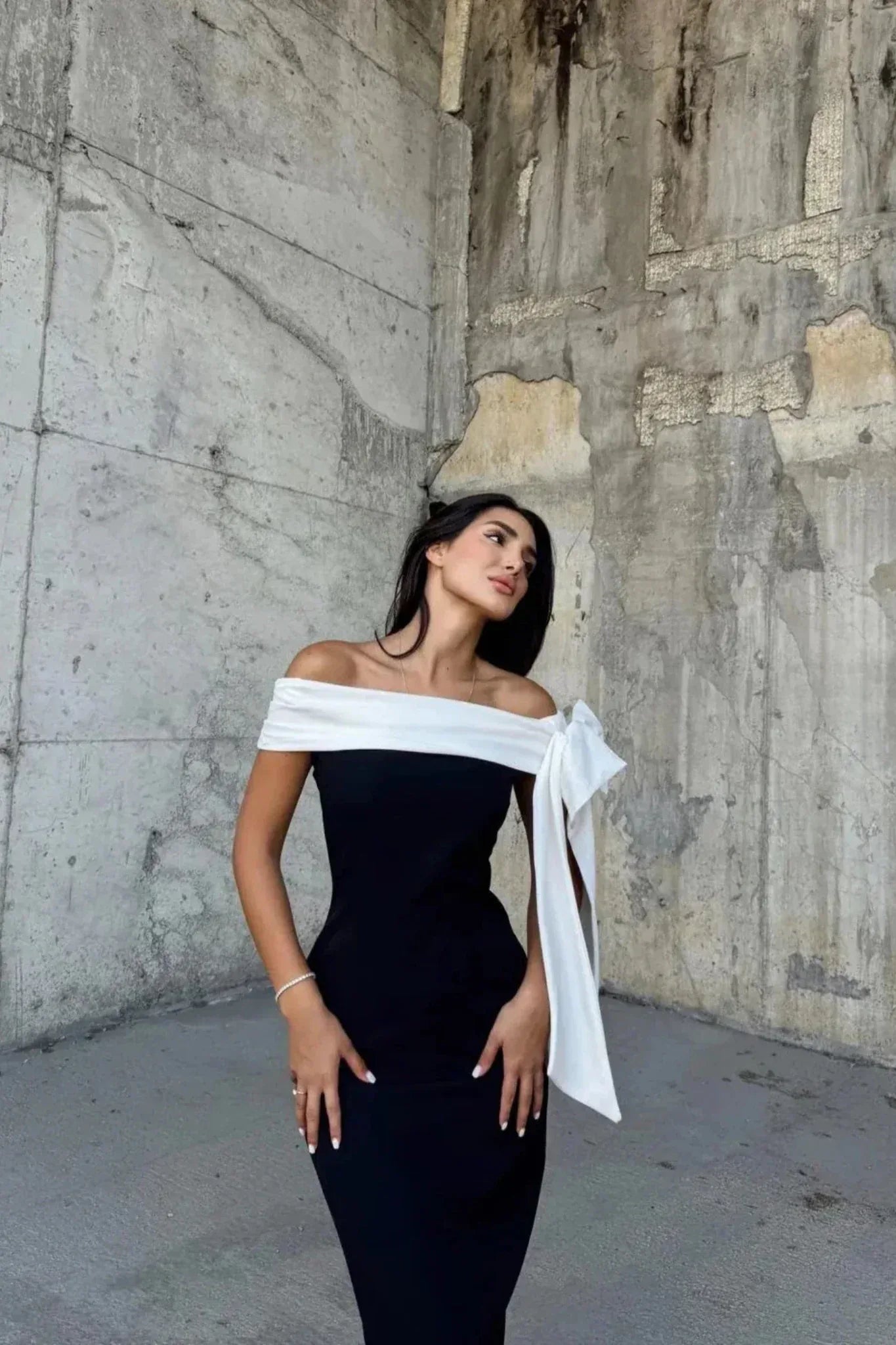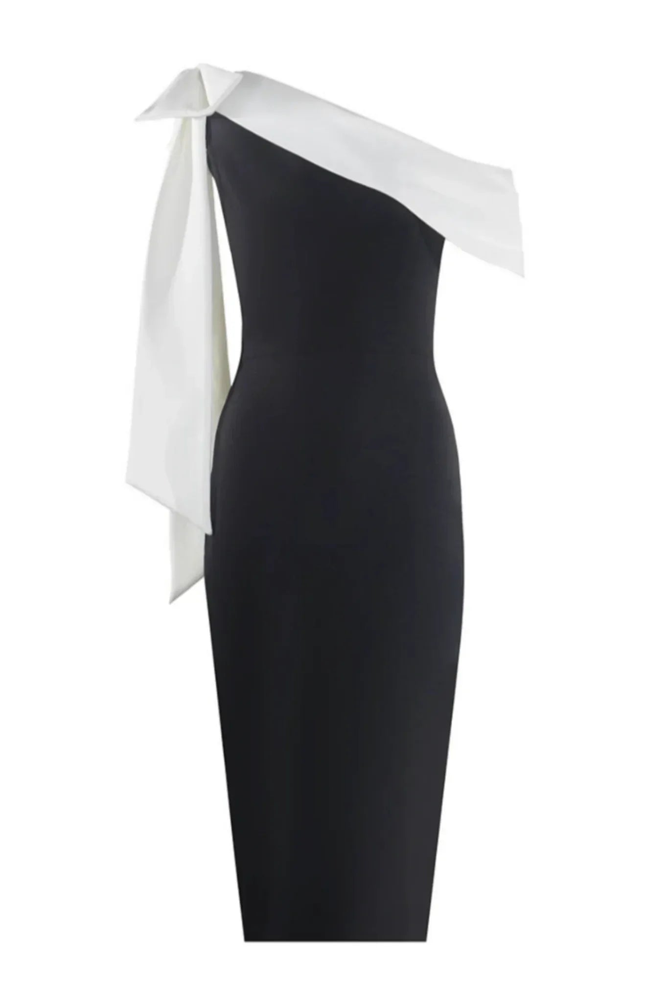 Aria is a striking off-shoulder silhouette designed to sculpt and flatter with effortless elegance. Featuring a statement white sash bow that drapes gracefully from the neckline, this bodycon midi dress combines modern flair with classic sophistication. Perfect for cocktail parties, romantic dinners, or elevated evening events, Aria ensures you stand out with refined confidence.