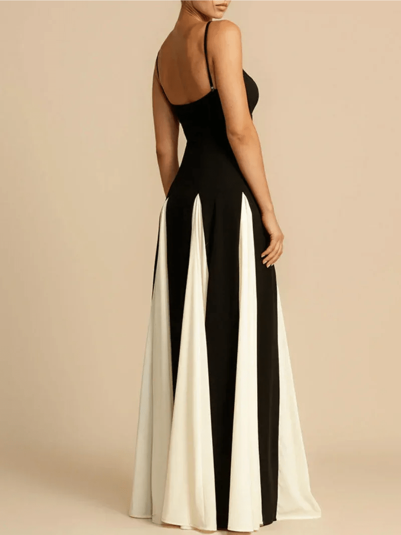 Exude modern sophistication in Reyna, a sleek maxi designed to flatter and move effortlessly. Featuring delicate spaghetti straps, an open-back design, and contrasting panel details, this floor-length dress contours the body while adding visual drama. Perfect for evening events, galas, or formal soirées, Reyna blends elegance with contemporary edge.