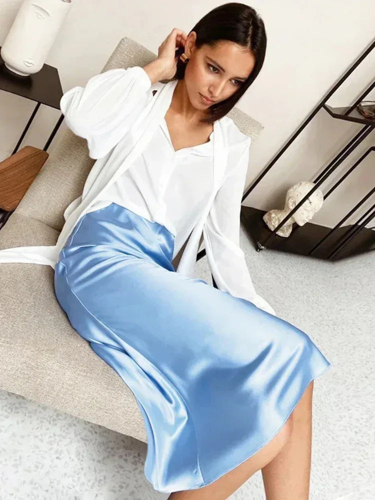 Refined and effortlessly versatile, Ivy is the elevated staple your wardrobe needs. Designed with a fluid silhouette and soft sheen finish, this midi skirt drapes beautifully for a polished, modern look. Perfect for both daytime styling and evening elegance, Ivy transitions seamlessly from casual chic to sophisticated occasions.