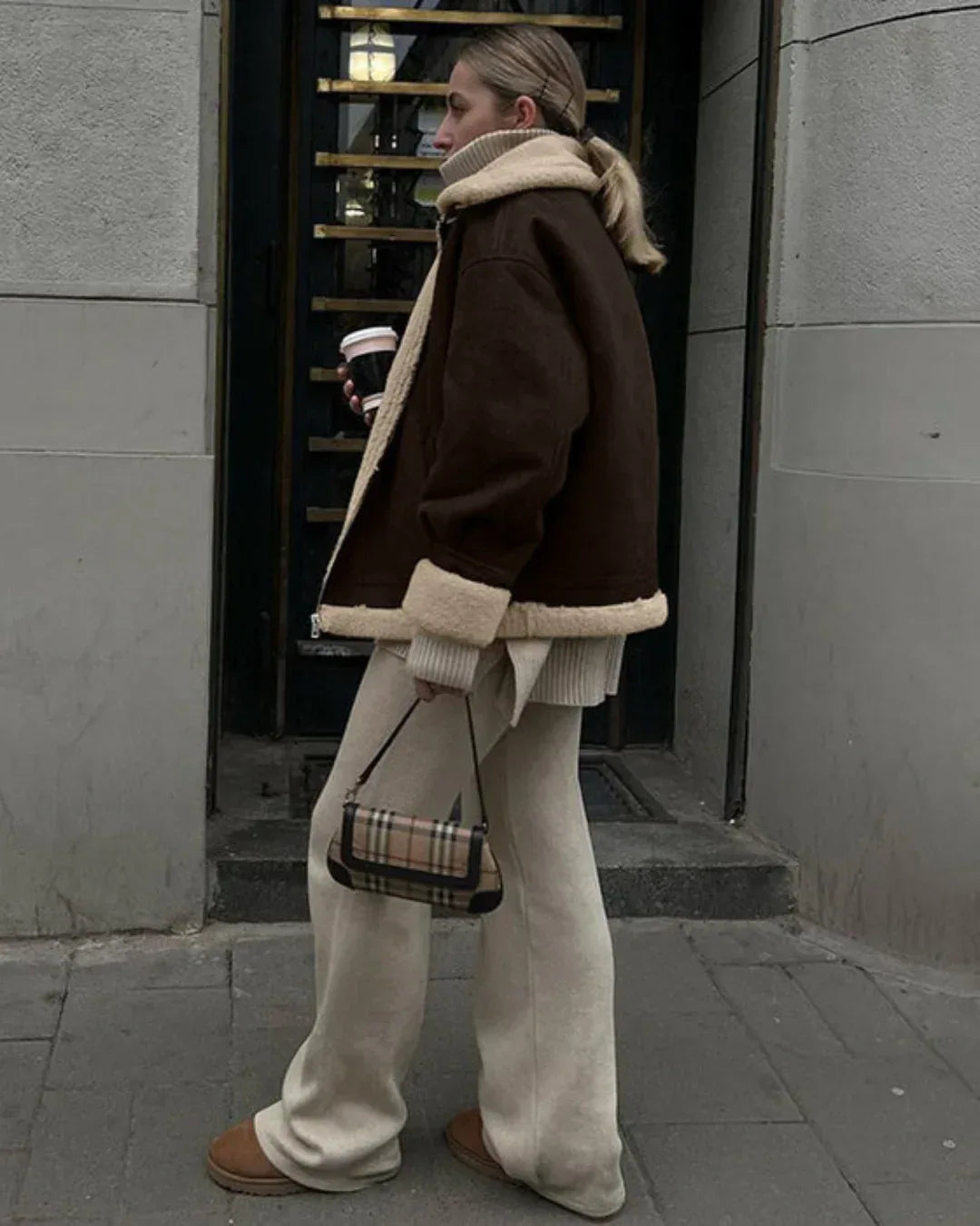 Elevate your cold-weather wardrobe with Nerina, a bold yet timeless outerwear essential. Designed in soft faux suede with plush shearling lining, this aviator-style jacket blends warmth with effortless edge. Its structured yet relaxed silhouette makes it the perfect layering piece for modern, everyday styling.