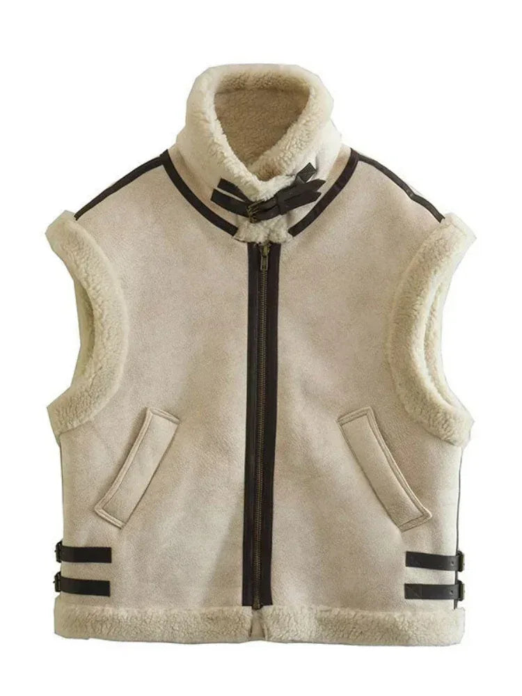 Elevate your layering game with Odette, a statement outerwear piece designed for effortless cool-weather styling. Featuring a structured silhouette with plush trim detailing, this sleeveless vest blends warmth with modern edge. Perfect for transitional dressing, Odette adds texture and dimension to any outfit.