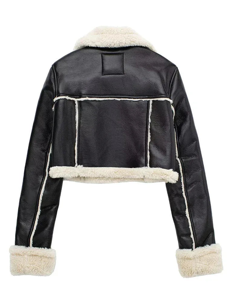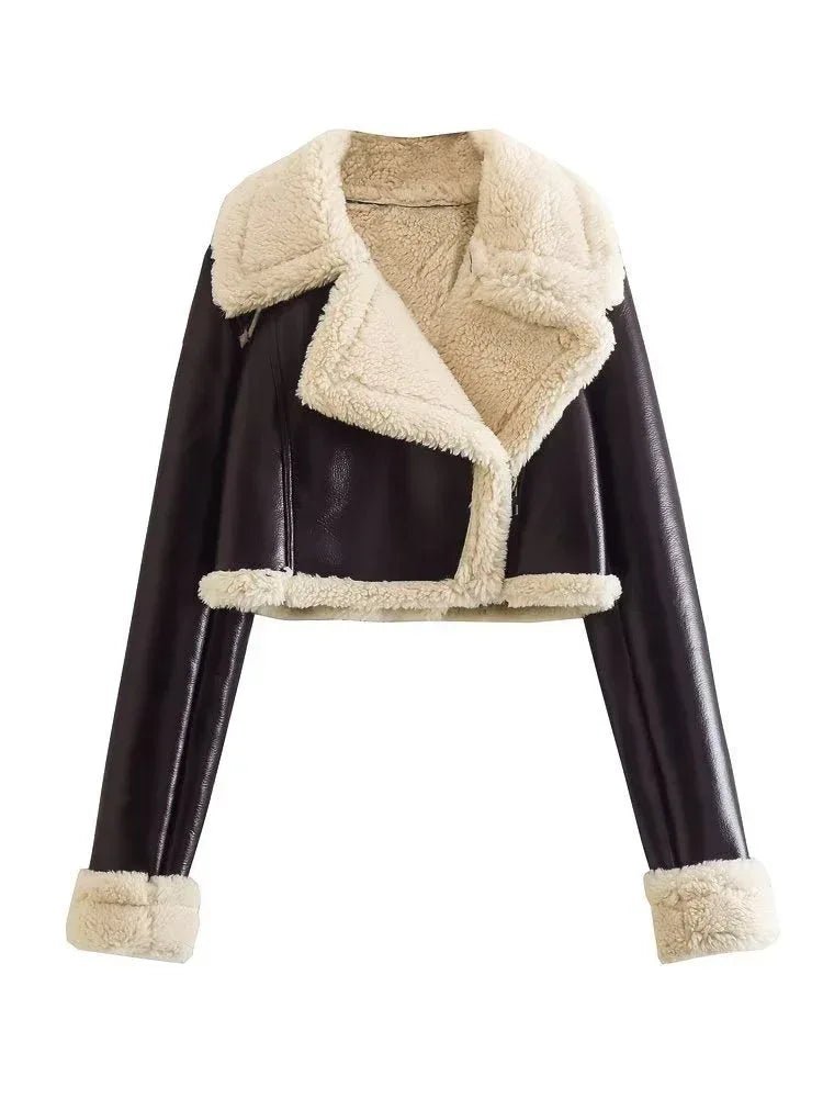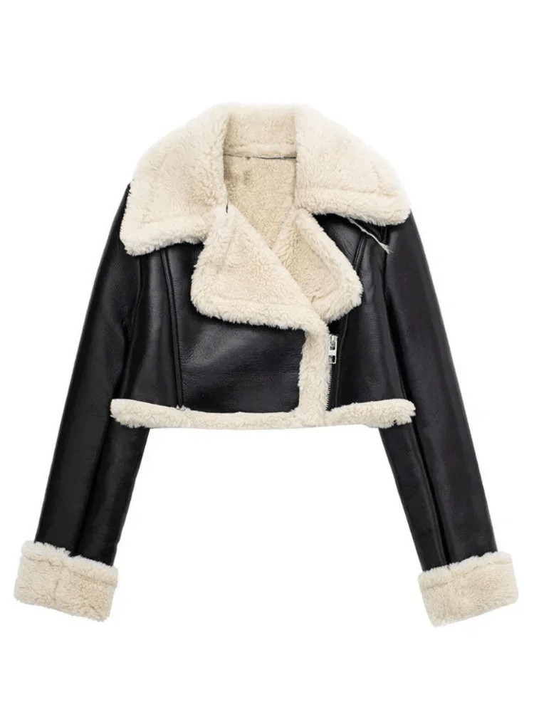 Bold, cozy and effortlessly cool, Ravina is the ultimate cold-weather statement layer. Designed with a sleek faux leather exterior and soft shearling-style lining, this jacket blends vintage biker energy with modern polish. Perfect for layering over knits, denim or dresses, Ravina brings warmth and edge in equal measure.