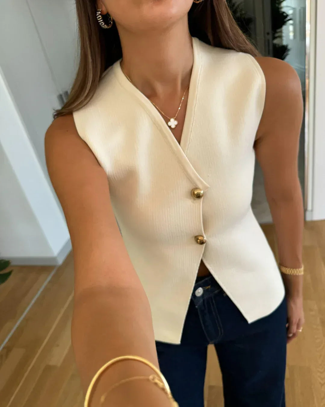 Add refined polish to any outfit with Seren, a versatile textured knit waistcoat designed for effortless styling. Featuring a tailored silhouette and soft tricot construction, this piece layers beautifully over blouses or dresses, making it a chic addition to both casual and formal ensembles.