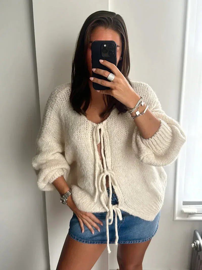 Wrap yourself in effortless sophistication with Taela, a chic knit cardigan designed to combine comfort with refined style. Featuring soft, breathable fabric and intricate lace-up detailing, this piece flatters the silhouette while adding a polished, elevated touch. Perfect for layering during cooler seasons, Taela blends everyday ease with subtle luxury.
